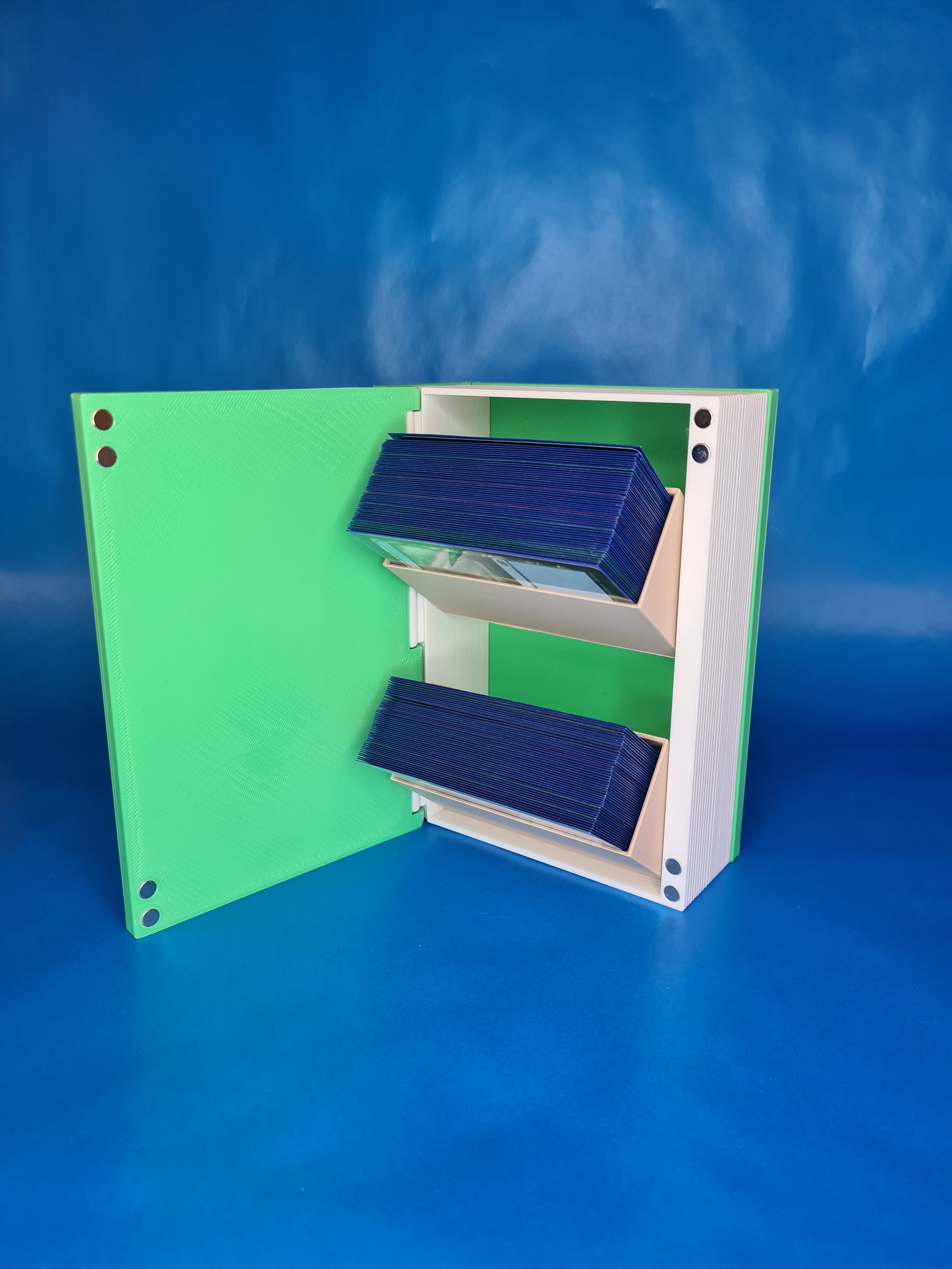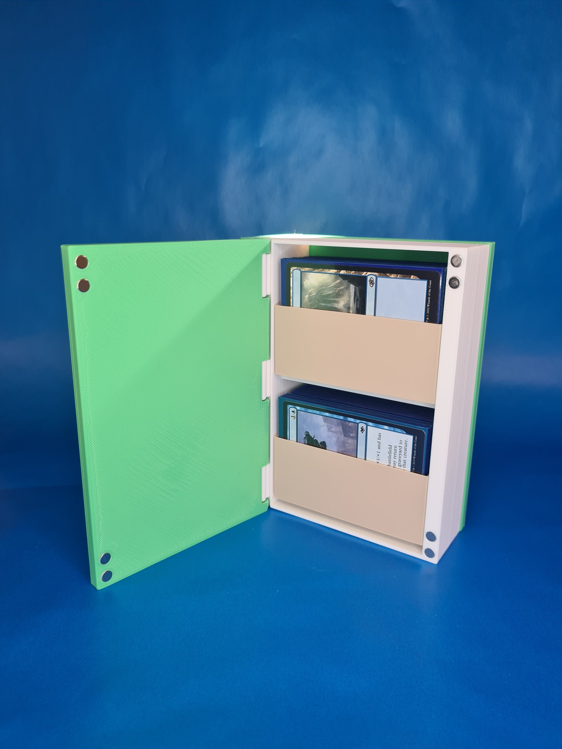 Inside, you’ll find two angled internal trays perfect for MTG decks (sleeved or unsleeved). Strong built-in magnets keep the lid shut, and the entire piece is fully 3D printed with high-quality filament for a clean, vibrant finish.